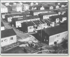 Her kan tilskueren se inn i noe av barakkebebyggelsen på Gomalandet slik den framsto etter oppførelsen i begynnelsen av krigen. Mye av gårdsdriften til Strand Gård ble berørt av denne bebyggelsen. Gården sluttet etterhvert å eksistere som gårdsbruk da grunnlaget forsvant med jorda som ble fratatt til dette formålet. Begreper som ”Bumarka” ble til Bumarkgata”. Helt i øverkant av bildet, på baksiden av ”Kamsvåg” og ”Aashuset” ser vi barakkene i Storenga. Denne veien ble hetende ”Storenggata”. På noe av de beste engstykkene bak Storenggata ble ”Svenskehusan”, som var en gave fra Sverige, bygd. Denne gata fikk betegnelsen ”Sveagata”. Strand Gård ble etterhvert mer eller mindre ”vingeklippet”og grunnlaget for videre drift borte.