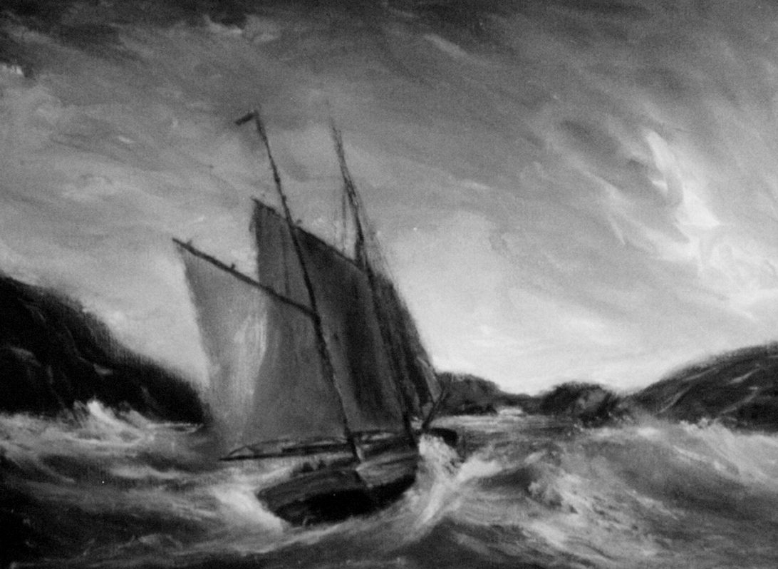 Inn Dalasundet til Kristiansund. Etter maleri av Tore Grønseth.